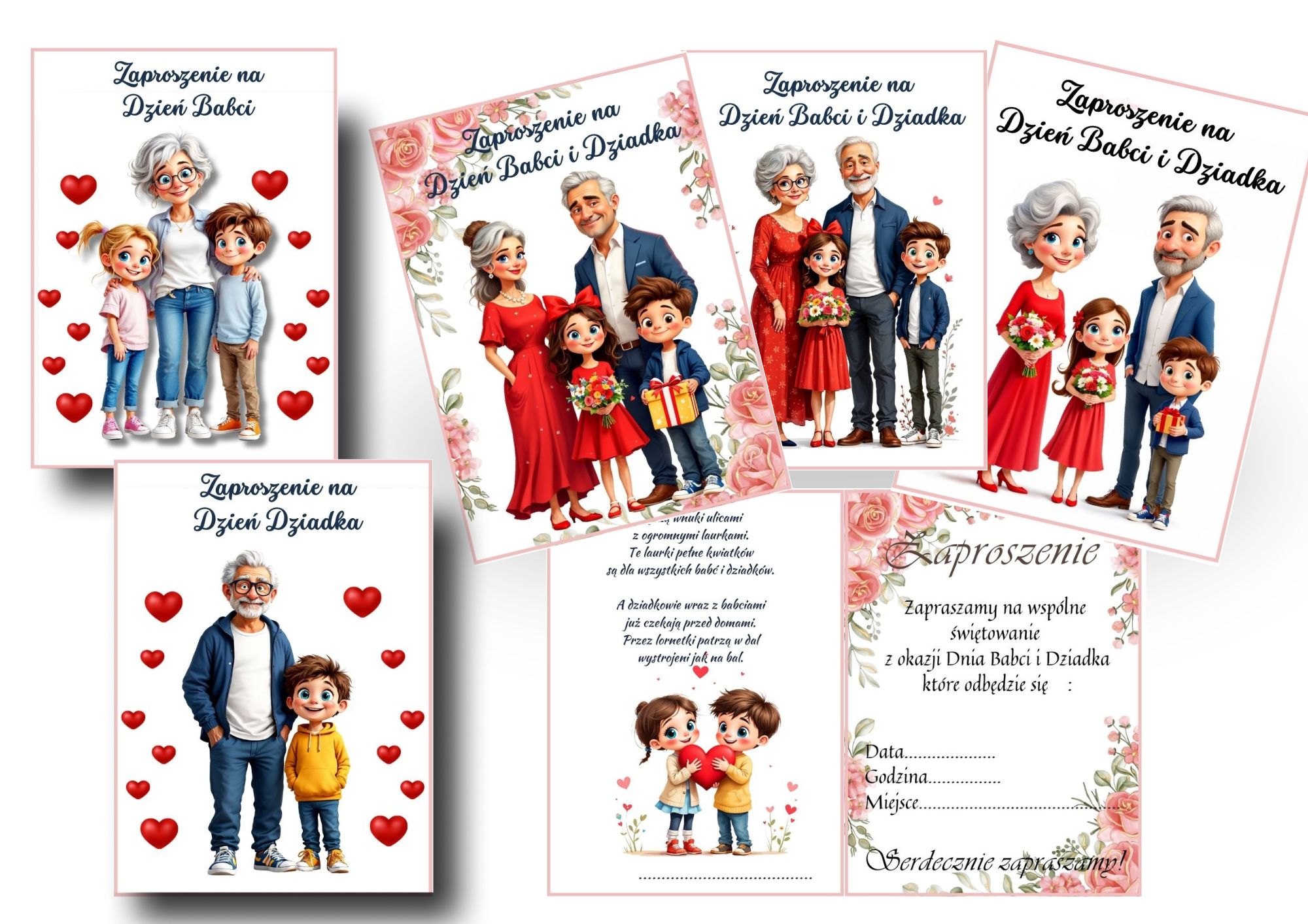 DWUSTRONNE SKŁADANE ZAPROSZENIA NA DZIEŃ BABCI I DZIADKA / DZIEŃ BABCI / DZIEŃ DZIADKA