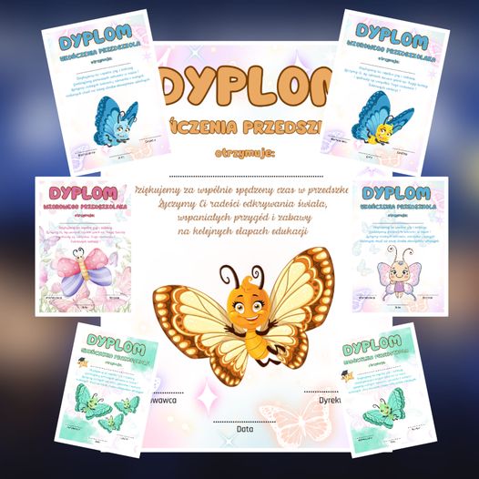 DYPLOMY UKOŃCZENIA PRZEDSZKOLA oraz WZOROWEGO PRZEDSZKOLAKA DLA GRUPY MOTYLKI
