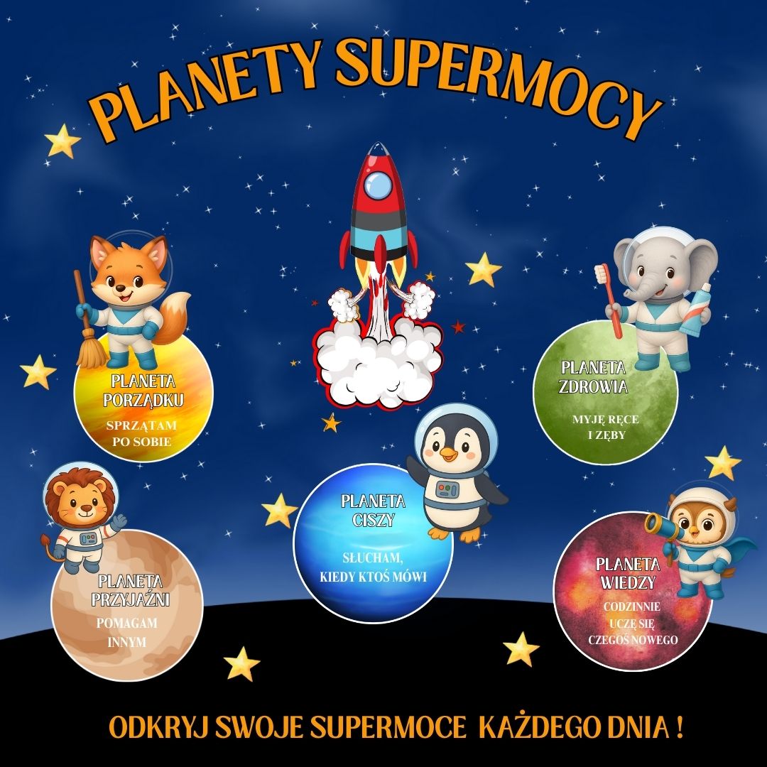 Dzięki „Planetom Supermocy” Twoja sala zamieni się w kosmiczną przygodę, która uczy, inspiruje i motywuje każdego dnia