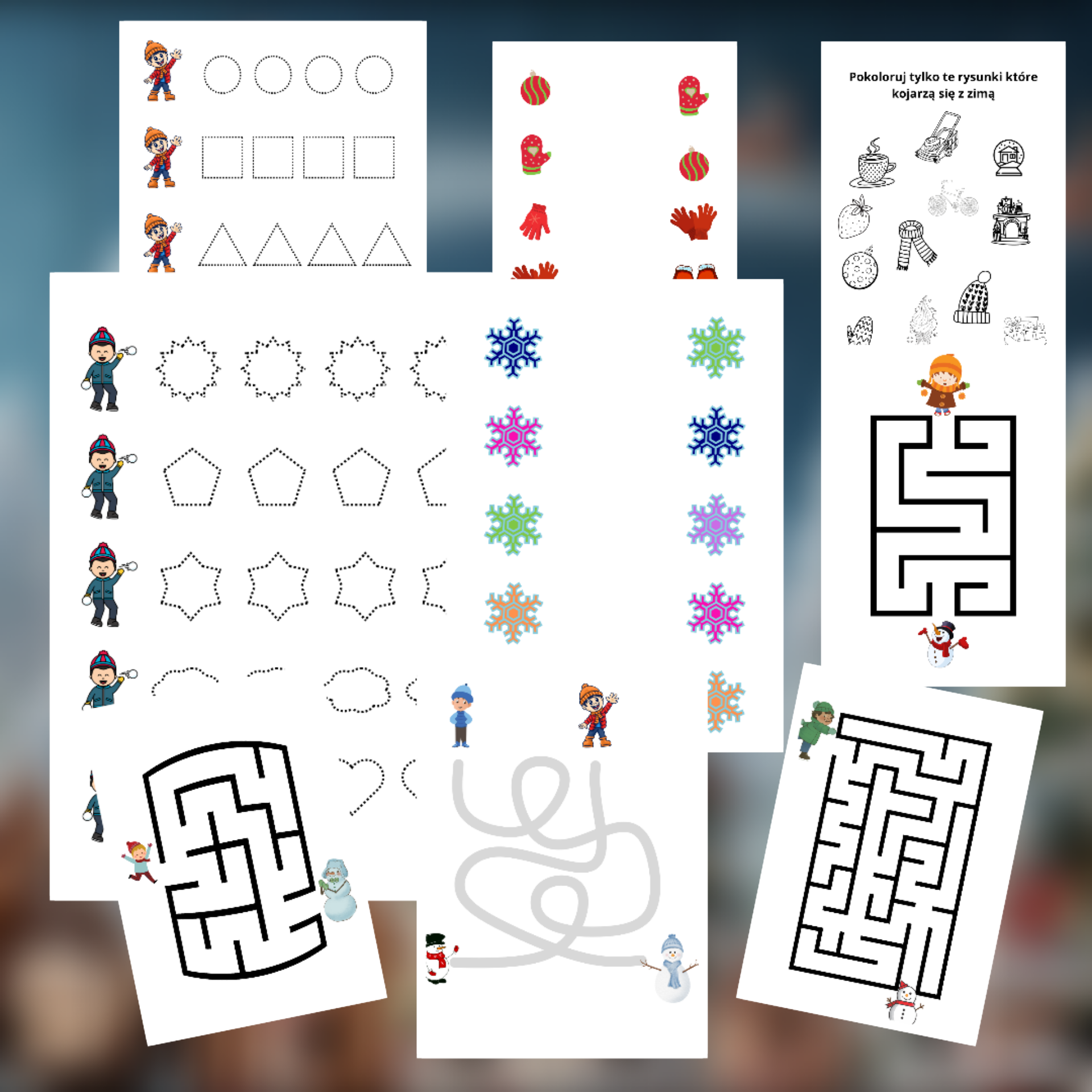• karty pracy (szlaczki,labirynty,wyklejanki,łączenie w pary, wielkości )